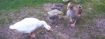 Pilgrim pair of Geese - gander is white on left, goose is grey and white on right 2011-12-10 23:22:17