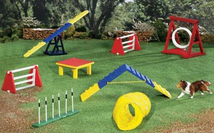 | breyers breyer agility set dog horse donkey jump hoop sea saw tetter totter walk course |