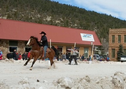 | horse equine skijoring sundance wy winter fest RINGS RING JOUSTING winterfest festival skijoring competition |