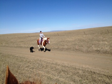 | paint horse prairie black german shepherd dog dogs pinto riding |