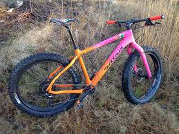| pink orange fat bike salsa bicycle trails snow salsa |