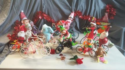 | elf shelf valentine group bicycle ride elves easter bunny santa skeleton riding bikes bike barbie built for two 2 |