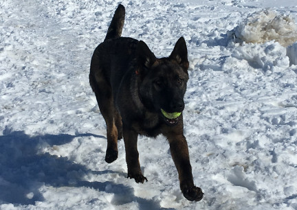 | german shepherd dog dogs sable in training train harness snow 2018-03-02 fetch ball |