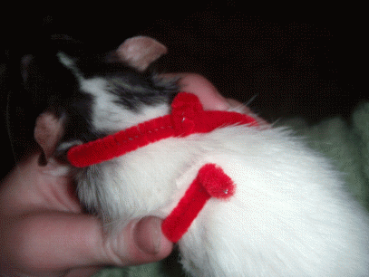 | 8 - undo the "clasp", slip loop over rattie's head, bring end around and under, redo "clasp" - 2009-06-05 17:59:10 |