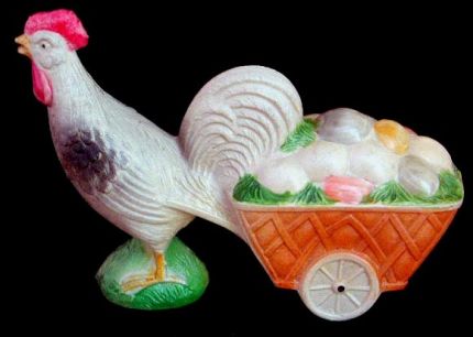 | vintage toy chicken cart rooster pulling harness harnessed |