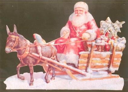 | st saint nik nikolas santa claus father christmas donkey donkeys donkies cart harness sled sleigh |