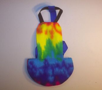 This one is for an older Gosling or a Duck and will fit your gosling for weeks. It is Tye-Dye Print and oh so cute. They grow so fasssssst! If it arrives and it would be a bit too big, wait and try it on your baby goose again. This Goose Diaper Holder can be lined with a sanitary napkin, a human baby diaper, a folded newspaper page. The two liners and the Goose Diaper Holder are hand or machine washable, hang to dry.