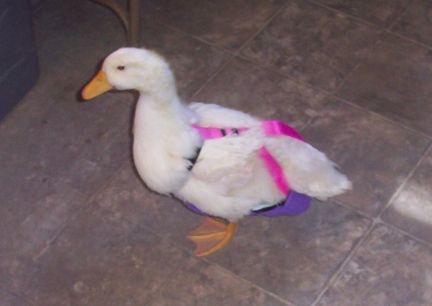 We will soon be offering Duck Diaper Holders in a variety of colors and prints. They will have cloth/waterproof liners and are the same type we use for our own ducks. We will offer the diaper holders in many sizes from duckling to Large Pekin size.