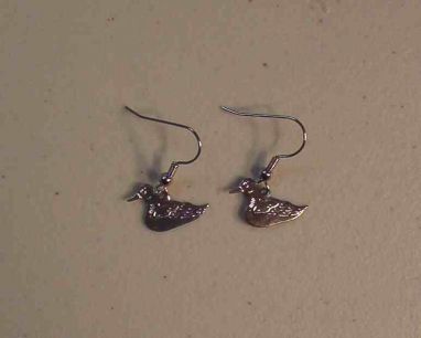 This is a cute pair of silver toned pieced duck earrings. The charms are approx 3/4" x 1/2". A must for all people that collect duck items.