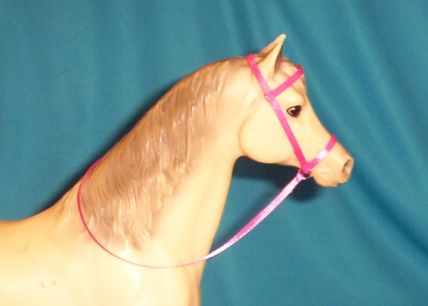 This is a hand crafted PINK Ribbon Bridle. It will fit most average horse breeds in the Traditional Size Breyer Horse. Please look at the photos.