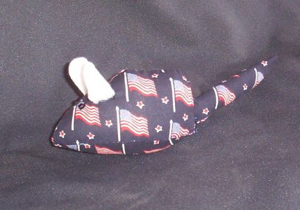 This one is made from an USA Flag Print with black bead eyes and pink ears.