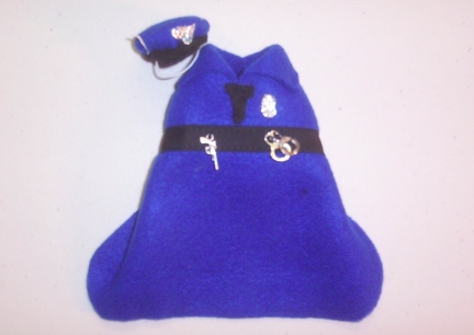 IF YOU LIKE THIS COSTUME, BUY IT NOW! I ONLY MADE FOUR OF THESE FOR RIGHT NOW. LOTS AND LOTS OF HAND WORK WENT INTO THIS POLICEMAN'S UNIFORM. I DO NOT KNOW WHEN I WILL BE MAKING MORE! This cute little outfit has a charm and a pistol charm sewn to the black belt. The hat stays on the rattie's head with adjustable elastic. If you have a dark colored rattie you can use a marker to die the elastic, just let the marker ink dry before putting the hat on the rattie's head. The tie on this Policeman's Uniform is made with polar fleece. Notice that this costume also has a little collar made like a People Policeman's Uniform.