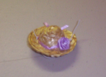 This is cute and even cuter with a rat head under it. It is a rat sized and has a little flower with a ribbon hat band, quite a Lady Rat Bonnet. It stays on the ratties head with elastic. The elastic is left long when it arrives to you so that you can cut it or tuck it to fit your own rattie.