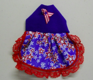 All of my items are my own design and pattern and are made in NW SD USA in our non smoking home. This one is a cute little Star Print Skirt, Blue Top w/ little fancy bow and white lace.