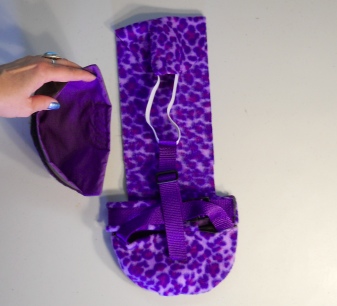 This Goose Diaper Holder Harness is made with A Purple Leopard Fleece it comes with TWO Purple removable diaper inserts , backed with a waterproof fabric and it is oh so cute. This Goose Diaper Holder can be lined with a sanitary napkin, a human baby diaper, a folded newspaper page or other folded papers.