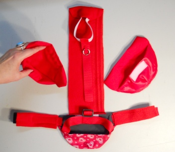 This Goose Diaper Holder Harness is made with Red Heart/Valentine's Day Print, backed with a waterproof fabric and it is oh so cute. It has a small ring for a light weight leash with a small hook. This Goose Diaper Holder can be lined with a sanitary napkin, a human baby diaper, a folded newspaper page or other folded papers.