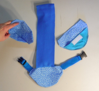 This Goose Diaper Holder Harness is made with Blue Leopard Print, backed with a waterproof fabric and it is oh so cute. This Goose Diaper Holder can be lined with a sanitary napkin, a human baby diaper, a folded newspaper page, other folded papers or nothing at all (using the liners as a cloth diaper).