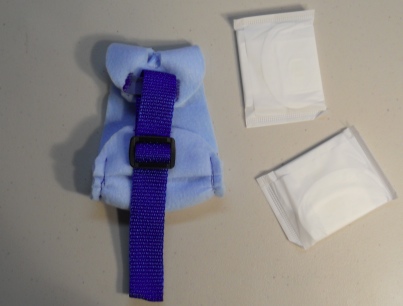 The Goose Diaper Holder I have designed is made of polar fleece. Polar Fleece is light weight, soft, has a bit of give/stretch to it and can be washed in the washing machine or by hand and hung to dry. Polar Fleece was created for sportsmen. You can wash out polar fleece, ring it out very well, and put it back on, even damp it will dry pretty quickly. When polar fleece first came out I was backpacking with and training and racing sled dogs....wonderful stuff. Before it, fabrics used would hold the water or wetness that sportsmen would encounter. Polar Fleece is non absorbent and perfect for Goose Diaper Holders.