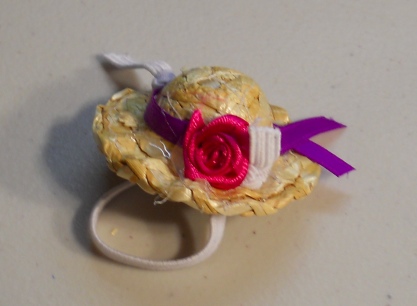 This is cute and even cuter with a rat head under it. It is a rat sized and quite a Lady Rat Bonnet. It stays on the ratties head with elastic. The elastic is left long when it arrives to you so that you can cut it or tuck it to fit your own rattie.