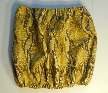 This item is a Snake Skin Print Cotton type fabric Rattie Caddy. It should hold up to three ratties while they sleep, eat or play in it hanging around your neck. This item goes on over your head and will sit around your neck. Ratties Marna, Sweety and LaRue all smilesLove These.
