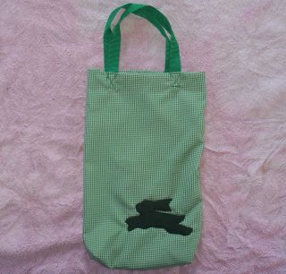 This is a cute all green "Bee Green" Tote Bag. It is made with a checkered green/white fabric with a green fleece rabbit cute out. It is approx. 13 1/2 x 10 3/4" x 2". It is good and deep. The handles are made with green poly webbing and triple stitched for strength.