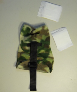 The Duck Diaper Holder I have designed is made of polar fleece. Polar Fleece is light weight, soft, has a bit of give/stretch to it and can be washed in the washing machine or by hand and hung to dry. Polar Fleece was created for sportsmen. You can wash out polar fleece, ring it out very well, and put it back on, even damp it will dry pretty quickly. When polar fleece first came out I was backpacking with and training and racing sled dogs....wonderful stuff. Before it, fabrics used would hold the water or wetness that sportsmen would encounter. Polar Fleece is non absorbent and perfect for Duck Diaper Holders.