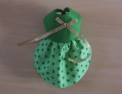 These little dresses are made in a variety of ways. This one is a Cute St. Pat's Dress made from Green Polar Fleece with a cute Shamrock Print skirt. It has A Gold bow from the pot of Gold on the blouse.