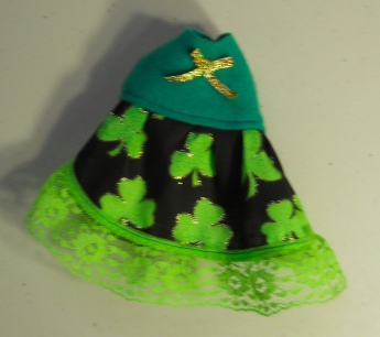 These little dresses are made in a variety of ways. This one is a Cute Little St. Pat's Shamrock print skirt is trimmed with GREEN Lace and has a cute little green top.