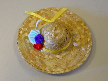 The hat stays on the animal's head with adjustable elastic. I left the elastic long so that you can move the knot to fit your animals. You can also color the elastic with permanent marker to darken it for darker colored mice.
