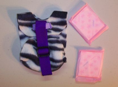 This one is for a Gosling Hatchling and will fit your gosling for a few weeks. It is Zebra Print and oh so cute. They grow so fasssssst! If it arrives and it would be a bit too big, wait a day or two (literally) and try it on your baby goose again. The Goose Diaper Holder comes to you with two Pantie Liners to get you started.