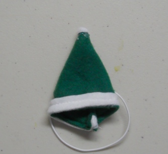 This hat is made of quality polar fleece in Green is trimmed in White polar fleece with White pom pom on top. The hat attaches to your pet's head with elastic. If you have a dark colored pet you might want to dye the elastic with a permanent marker, let dry before placing on the pet's head.