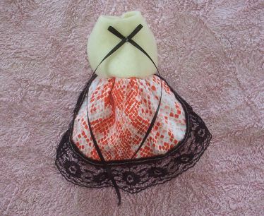 The waist measurement on this Dress is approx 7 3/4", it does have a bit of stretch in it, and the outfit is approx 6 1/2" from neck to tail.