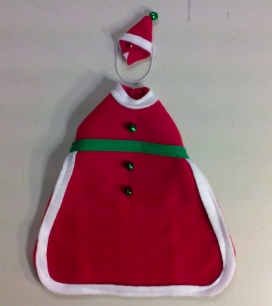 These little coats are made in a variety of ways. This one is a Cute Little Christmas Santa Suite with White Trim, A Green Belt, and Ringing Green Bells even on the Matching Santa Style Hat. I wish the photos showed the outfits better then they do. The hat stays on the GP's head with adjustable elastic. If you have a darker colored pet, use permanent marker to color the elastic, just wait for the ink to dry before putting the hat onto the GP's head.