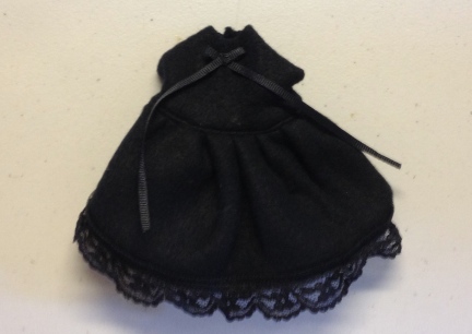 These little dresses are made in a variety of ways. This one is a Cute Little ADORABLE Black Dress! It is Black with Black Lace and an Itty Bitty Black Bow.