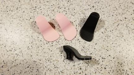 Deron Started Designing and 3D Printed these types of Shoe Soles for my Dolls that I might have bought used and they came without Shoes, or that I just wanted more shoes for. I LOVE THESE. You can add ribbons or elastic or fabrics to make shoes for your own Dolls. I use Hot Glue with I make mine, but Super Glue or Craft Glue could also be used.