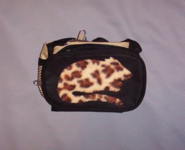 The Leapard Print polar fleece rattie cut out is hand sewn on to the Fanny Pack.