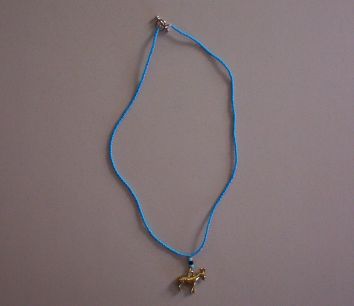 Cute blue seed bead necklace with drop Donkey charm mounted on three E beads.
