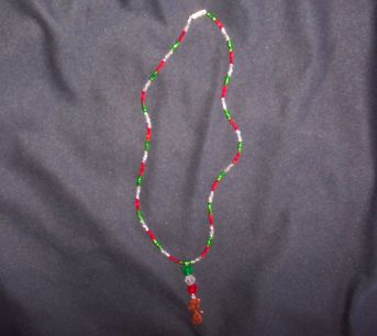 WEAR THIS NECKLACE TO SHOW YOUR LOVE OF RATTIES FOR THE HOLIDAYS. THIS NECKLACE IS APPROX. 20" LONG WITH SEED BEADS (that is not the size, just the type of beads used) The charm is approx 1" tall and is a copper colored mouse/rattie and drops from the necklace with three larger beads.